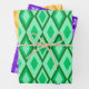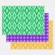 ein Gemustertes, geometrisches Set aus grün, gelb und Lila