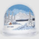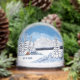 Un globe avec une belle scène hivernale comprenant des montagnes enneigées, une cabane rustique et des conifères enneigés. L'image et le texte peuvent être personnalisés. Œuvre originale de W.B.