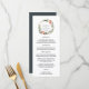 Notre menu de mariage chic présente vos plats de départ, vos entrées et vos desserts dans une écriture élégante, avec vos noms encerclés par une couronne botanique verte de fleurs d'hiver aquarellées, de poinsettias et de pommes de pin. Coordonne avec notre collection de mariage Mystical Winter.
