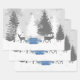 Enveloppez vos cadeaux dans la magie des fêtes avec ces feuilles de papier à envelopper Blue Winter Wonderland. Doté d'élégantes silhouettes de rennes parmi les pins et d'une scène de forêt enneigée, le design scintille avec des lumières de Noël festives, des jardins luxuriants de pins et des flocons de neige qui tombent doucement. Le joyeux Joyeux Noël est présenté dans une typographie moderne audacieuse, créant un look élégant et intemporel. Parfaits pour capturer l'esprit d'un véritable pays d'hiver merveilleux, ces draps font un beau choix pour tous vos besoins d'emballage de vacances.