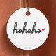 Moderne, minimalistische runde Geschenkmarke mit "ho ho ho ho ho" in Schrift-Handschrift Typografie in schwarz gefolgt von einem niedlichen roten Liebe Herz. Das perfekte Geschenk oder Accessoire mit einem super festlichen Weihnachtsgefühl für die Ferien, die Sie Liebe!