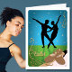 Feiern Sie die Freude am Balletttanzen mit dieser beliebten Grußkarte. In der Silhouette ist ein pas de deux hinterbeleuchtet mit blauen Lichtern, Sternen und Glitzern. Der Boden der Bühne ist grün mit Sternen und Glitzern. Der Kern der Ballettübungen wird an der Barre durchgeführt. Mit braunen Ballett-Schuhen sind Sie für den Unterricht bereit. Gold-Ornamente schmücken die Ecken der Karte mit dem Wort Ballett in Schriftzypografie. Innen: Leere für jeden Anlass.