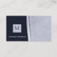 Eine hoch entwickelte Marineblau-Monogramm-Visitenkarte mit einem Bild einer stilvollen zeitgenössischen silbernen Feder. Personifizieren Sie diese moderne und berufliche Artgeschäftskarte, indem Sie Ihre mit Monogramm Initiale addieren. Ebenedruckbild, keine Prägung oder Beschaffenheit trafen zu.