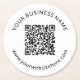 Hochgeladene QR-Codevorlage mit bearbeitbarem Text Runder Pappuntersetzer