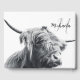 Hochlandkuhportrait Initialmonogramm Schwarz-weiß Gästebuch