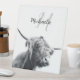 Hochlandkuhportrait Initialmonogramm Schwarz-weiß Sockelschild