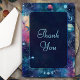 Mit dieser eleganten Celestial Midnight Moon Phases Wedding Danke Card Ihr herzliches Dankeschön zum Ausdruck bringen. Mit einem faszinierenden, blauen und aquamarinen Galaxiehintergrund ist dieses Design mit glänzenden Sternen und anmutigen Mondphasen geschmückt, die die zeitlose Schönheit Ihrer Liebe symbolisieren. Das himmlische Motiv fügt eine Touch von Mystik und Romantik hinzu und schafft so einen atemberaubenden Sake für Ihre Gäste. Ideal für eine Mondfeier, ist diese Dankeschön-Karte ein anmutiger Weg, um Ihre kosmische Hochzeitreise zu beenden.