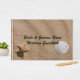 Sand, Muscheln, Seesterne und Sand Dollar Hochzeitsbuch.
