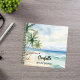 Ein tropischer Strand, Wellen und Palmen, Aquarell. Personalisieren Sie den Namen Ihrer Brautjungfrau und fügen Sie ihn hinzu. Schwarzes handgeschriebenes Stilskript.