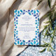Mit unserer exquisiten Hochzeitssuite mit blauen Kacheln bringen Sie Ihre Gäste zu den sonnenverwöhnten Küsten des Mittelmeers. Die marokkanischen und spanischen Fliesenmotive, die in lebhaften Blautönen gestaltet sind, schaffen eine rustikale Eleganz, die sich perfekt für eine Hochzeit in Urlaubsort oder eine Feier mit dem Thema Küste eignet. Die Aquarelldetails und der elegante Script-Schriftart verleihen dieser Einladungssuite ein Gefühl von Ruhe und Eleganz. Dieses einzigartige Design wird Ihre Gäste begeistern und sie mit Spannung verlassen, um Ihren besonderen Tag zu antizipieren.