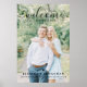 Einfaches Begrüßungszeichen mit Platz für das Foto von Couple. Dieses Zeichen hat einen schieren undurchsichtigen Effekt über dem Bild, sodass Ihr Foto leichter erscheint als es wirklich ist. Sie können diesen Effekt entfernen, indem Sie den Link Bearbeiten mit dem Entwurfstool verwenden. Fügen Sie Ihren eigenen Text, Farben, etc. hinzu. Mit der Transfervorlage-Option können Sie Ihr eigenes Material auswählen. Wenn Sie Hilfe beim Design benötigen, kontaktieren Sie uns bitte!