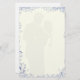 Elegantes Hochzeitsstipendesign mit einer sanften Silouhette von Tanzzeitungen im Hintergrund und einer dekorativen Blumengrenze. Es ist in weißem Hintergrund oder hellblau mit allen passenden Produkten für Hochzeitsfeier und Set.