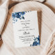 Diese moderne Blumen-Hochzeitseinladung ist perfekt für eine Winterhochzeit. Dieses elegante, handbemalte Blumendesign besticht durch blau, dunkelblau und indigofarbene Blume mit grünen Blätter, die eine majestätische Naturschönheit darstellen.