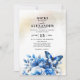 Elegante blau-weiße Aquarell Blumen und Schmetterling Hochzeitseinladung personalisiert mit einem Foto auf der Rückseite. Sämtliche Formulierungen können auf Ihre persönlichen Bedürfnisse zugeschnitten werden. Wenden Sie sich an mich, um Hilfe bei Ihren Anpassungen zu erhalten oder um zusätzliche Matching- oder Koordinierungsstellen von Zazzle-Produkten für Ihre Veranstaltung(en) anzufordern.