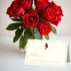 Zeitlose Eleganz: Traditionelle minimalistische rote Rosen Hochzeit mit goldener Schrift Typografie und Elfenbeinhintergrund.