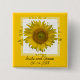 Personalisieren Sie die hübsche Gelbe Sonnenblume Hochzeitsschaltfläche, um ein einzigartiges Gastgeschenk oder Geschenk für die frisch vermählten Braut und Bräutigam oder Brautmädchen zu schaffen. Diese niedliche Brauseknopf mit Blumen und Blumen ist mit einem digital verbesserten Blumenfoto einer Sonnenblumenblüte auf gelbem und weißem Hintergrund ausgestattet. Ideal für Sommer oder Hochzeit im Herbst.