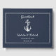 Elegantes und einfaches Gästebuch für Hochzeiten mit einem nautischen Anker und einfachem Textdesign. Dieses Design ist eine einzigartige Wahl für eine moderne Hochzeit. Einfach an Ihre Hochzeitsdetails anpassen. Klicken Sie auf "Anpassen", um weitere Personalisierungsoptionen zu erhalten.