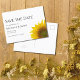 Moderne florale Ankündigung Datum freihalten mit gelbem Sonnenblumendesign und einfacher Typografie. Mit anpassbarer schwarzer Schrift können Sie Ihre eigenen Informationen hinzufügen. Dieses minimale Design ergänzt Ihre Hochzeitsplanungstätigkeiten hervorragend.