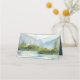 Hochzeitstisch-Platzkarten mit landschaftlicher Aquarellgestaltung in staubblauen und grünen Tönen. Die Seeszene mit Bergen, Grünpflanzen und Kiefern, dem See und einem hellen Himmel. Die Innenseite ist mit dem Namen der Braut und des Bräutigams und dem Hochzeitstag personalisiert. Wenn Sie passende Produkte wünschen, schauen Sie bitte in meiner Sammlung von Mountain Lake nach.