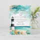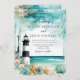 Schöne Hochzeitseinladung mit einem schwarz-weißen Leuchtturm, Seestern und Muscheln. Ideal für eine Hochzeit. Die Wörter können geändert werden, um Ihre eigenen Angaben oder Anforderungen Anzug