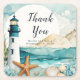 Schöner Untersetzer mit einem schwarz-weißen Leuchtturm, Seestern und Muscheln. Ideal für eine Hochzeit. Die Wörter können geändert werden, um Ihre eigenen Angaben oder Anforderungen Anzug