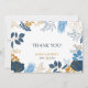 Blau und gold stilisierte Blume und Blätter elegantes Hochzeitsrahmendesign. Vielen Dank Vorlage können Sie personalisieren.