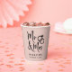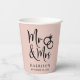 Maßgeschneiderte, rosafarbene Papiertassen für Ihre Hochzeitsfeier und Veranstaltungen mit "Mr. & Mrs." geschrieben in einem großen Drehbuch und einer Illustration von zwei Hochzeitsringen vereint. Personalisieren Sie Ihren Nachnamen und Ihr Hochzeitstermin.