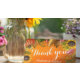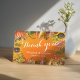 Hochzeitsdanken Sie Ihrer Card Vorlagen - elegante Herbst-Ahorn-Blätter, Pumpkins und Sonnenblumen Aquarellfarben-Blume auf Orange glänzenden Hintergrund. Alle Textstile, Farben, Größen können an Ihre Bedürfnisse angepasst werden.