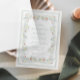 Elegante Vellum Hochzeitseinladung mit einer handgezeichnet Aquarellbilderin eines verzierten Vintagen Rahmens, der aus grünen und zarten Weinreben besteht, mit zauberhaften, gelben und blauen Singvögeln, die anmutig unter kleinen roten Blumen gekrönt sind und ein skurriles und dennoch raffiniertes Design schaffen. Die Namen der Braut und des Bräutigams sind in klassischer Weise in grüner Serifentypografie und die Details der Veranstaltung sind in einfacher Weise in grün dargestellt. Diese Einladung eignet sich perfekt für Paare, die die populäre, großtausendjährige Ästhetik annehmen und die Romantik vergangener Zeiten mit einer erfrischend modernen Touch verbinden. Überlagern Sie es auf Ihrem Lieblings-Foto oder auf einem unserer korrespondierenden Halb- oder Fotokartenhintergründe für eine ausgeklügelte und zeitlose Kombination (sehen Sie unsere Sage Green Background For Vellum Overlays Collection oder schreiben Sie uns für den Link).