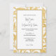 Gold und Schwarz Elegante Hochzeitseinladung mit schwarzen Rahmen Akzente und Text. Die Vorderseite ist mit einem stilistischen goldfarbenen Schwirbelstück und einem goldenen und schwarzen Rahmen rund um den Text gestaltet. Der erste Text enthält: die Namen von Braut und Bräutigam, das Hochzeitdatum, die Uhrzeit, Ort und Empfang. Die Rückseite enthält den Text: UAWG und Ihre Antwortdetails. Zum Personalisieren fügen Sie einfach Ihren Text in unsere einfache Vorlage ein und ersetzen das Beispiel. Schauen Sie sich unbedingt die gesamte Gold und Black Elegant Wedding Collection an.