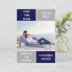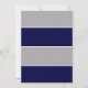 Navy Blau und Silber grauen Block Hochzeit Speichern Sie die Date-Karte. Auf der Rückseite befindet sich ein Muster mit breiten Bändern in blau und silbergrau.