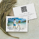 Dies ist eine Hochzeit in Urlaubsort-Save the Date-Karte mit einem eleganten kalligraphischen Schriftart und einem modernen Foto-Design. Die Rückseite enthält eine Nachricht und QR-Code, den Sie personalisieren können. Ändern Sie die Farben, Texte und Fotos ganz einfach nach Bedarf. Bitte kontaktieren Sie den Designer, wenn Sie Fragen zu diesem Design haben.