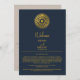 Eine marineblaue Hochzeit in Urlaubsort Passgestaltung mit goldenem Kompass und Reiseelementen. Dieses Design ist ideal für alle Frühlings-, Sommer-, Herbst- und Winter-Hochzeiten in Urlaubsort. Ein elegantes marineblau-goldenes Hochzeitsreisedesign mit Passgestaltung. Ein modernes Hochzeit in Urlaubsort-Itinerary-Programm-Design mit eleganten Elementen. Auch die passenden Hochzeitseinladungen und andere Schreibwaren sind verfügbar.