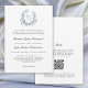 Dieses schlichte, moderne Design ist eine formelle Hochzeitseinladung mit persönlicher Touch und etwas Blau und bietet ein weitläufiges Hochzeitsfest-Wappen in staubblauer Umgebung der Braut und die Monogramminitialen des Bräutigams. Mit klassischer Einfachheit und einem praktischen All-in-One-Format bietet dieses Design eine schöne Schrift für die Namen von Braut und Bräutigam und eine traditionelle Serif-Schrift für den Detailtext. Das leafy botanische Wappen fügt dem einfachen, minimalen Design genau die richtige Farbmenge und Details hinzu. Sie können die Textplatzierung an Ihren Anzug anpassen, entfernen oder anpassen. Der beliebte weiße Hintergrund trägt zur klaren Einfachheit dieses Designs bei. Auf der Rückseite der Einladung befindet sich eine Vorlage, die Details für Ihre Gäste, UAWG und einen QR-Code enthält, um sich direkt mit Ihrer Hochzeitswebsite zu verbinden. Es bietet eine effiziente und kostengünstige Möglichkeit, UAWG Antworten zu erhalten und Ihren Gästen alle Informationen zu geben, die sie für Ihre Hochzeit benötigen.