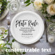 Die Square Paper Plate der Elegance Collection - eine spielerisch humorvolle Ergänzung zu Ihren Hochzeitsfestlichkeiten. Diese quadratische Papierplatte ist mit einer sauberen und modernen Ästhetik gestaltet und weist eine leicht anpassbare Aufschrift auf: "Plattenregel: Wenn sie köstlich aussieht, essen Sie sie. Wenn es noch köstlicher aussieht, Instagram es zuerst!" Das Design zeigt einen weißen Hintergrund mit elegantem schwarzem Text. Die zentrale Spaß-Inschrift verleiht Ihrer Hochzeitsfeier eine Touch Spaß und macht Ihren Gästen einen angenehmen und unterhaltsamen Eindruck. Unterhalb der Inschrift können Sie einen benutzerdefinierten Hashtag oder die Namen des frisch verheirateten Paares hinzufügen und eine personalisierte Touch hinzufügen. Zusätzlich sind das Zeremoniedatum und die Einzelheiten zum Veranstaltungsort enthalten, können aber bei Bedarf gelöscht werden. Das geschmackvoll gestaltete Square Paper Plate aus der Elegance Collection bietet Ihnen eine reizvolle Touch in Ihre Hochzeitstischeinstellungen. Seine individuell gestaltbaren Elemente machen es einzigartig und sorgen für eine harmonische Integration mit der Eleganz und Freude Ihrer Hochzeitsfeier.