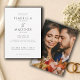 Eine klassische Serifentypografie Hochzeitseinladung, mit Ihrem Hochzeitsfest Foto auf der Rückseite. Ersetzen Sie das Probe-Foto durch Ihr eigenes Hochzeitsstift-Foto. Erhältlich in Print, als digitaler Download, oder beides.