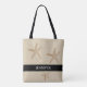 Modern Beach Hochzeitstasche. Starfish auf Sandfarben Imitat Burlap, Mutter der Braut, Name auf der Rückseite.