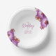 Erstellen Sie personalisierte Papierschalen für Ihre Hochzeitsfeiern. Orchideen im Blütendesign. Ideal für warme Wetterereignisse, Hochzeiten, Jubiläen, im Freien, drinnen. Nutzen Sie die Möglichkeit, die Themen der Blumenhochzeit, einschließlich tropischer Themen, zu ergänzen. Benutzen Sie die Vorlage, um den Namen des Ehepaares und das Datum der Hochzeitsfeier zu personalisieren.