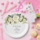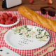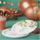 Die Hochzeitspapiertafel wird mit einem hübschen, weißen Rosenblumenprint gezeigt. Passen Sie dieses Element an, und ändern Sie den Beispieltext in Ihren Text. Suchen Sie nach unseren passenden Papierservietten und Papierbechern. Lizenzierte Printwerbung