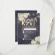 RSVP Reply Card Vorlagen Hochzeit - Elegante weiße Hydrangea-Blume und Streichleuchten auf Vintagem Navy Blue Floral Linen Hintergrund. Ein perfektes Design für Ihren großen Tag. Alle Textstile, Farben, Größen können an Ihre Bedürfnisse angepasst werden!