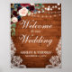 Rustikales Hochzeitsholz Lace Burgundy Blue Floral Poster