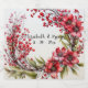 Hübscher Champagner kennzeichnet einen Kranz aus roten Blume, roten Beeren, Stöcken und Zweigen. Geben Sie Ihre Namen und das Hochzeitstermin ein. #generativecontent