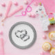 Hochzeitsfeierplatte in einem silbernen Imitat Glitzer rund um den Rand mit einem zweiherzigen Printdesign in der Mitte. In 7" Größe angezeigt. Verkauft in Paket mit acht. Passen Sie dieses Objekt an oder kaufen Sie es wie geplant.