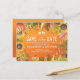 Save the Date Einladung Postkarte Vorlagen Hochzeit - Elegante Herbstmaple Blätter, Pumpkins und Sonnenblumen Aquarellfarben Blume auf Orange glänzenden Hintergrund. Ein perfektes Design für Ihren großen Tag! Alle Textstile, Farben, Größen können an Ihre Bedürfnisse angepasst werden.