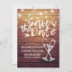 Save the Date Einladungskarten-Vorlagen Hochzeit - Elegantes Schriftzeichen, Vintage Champagnerbrille und Streichellichter auf rustikalem Holzhintergrund. Ein perfektes Design für Ihren großen Tag! Alle Textstile, Farben, Größen können an Ihre Bedürfnisse angepasst werden.