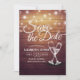 Save the Date Einladungskarten-Vorlagen Hochzeit - Elegantes Schriftzeichen, Vintage Champagnerbrille und Streichellichter auf rustikalem Holzhintergrund. Ein perfektes Design für Ihren großen Tag! Alle Textstile, Farben, Größen können an Ihre Bedürfnisse angepasst werden.