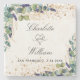 Ein stilvoller weißer Hintergrund. Mit Eukalyptus-Blätter, Sprigs, Grünpflanzen und Imitaten goldene Krawatten dekoriert. Imitate vergoldeten Glitzer Staub. Personalisieren und fügen Sie Ihre Namen und das Hochzeitstermin. Der Name ist mit einem modernen handgeschriebenen Stilskript geschrieben.