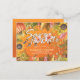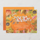 Save the Date Einladung Postkarte Vorlagen Hochzeit - Elegante Herbstmaple Blätter, Pumpkins und Sonnenblumen Aquarellfarben Blume auf Orange glänzenden Hintergrund. Ein perfektes Design für Ihren großen Tag! Alle Textstile, Farben, Größen können an Ihre Bedürfnisse angepasst werden.