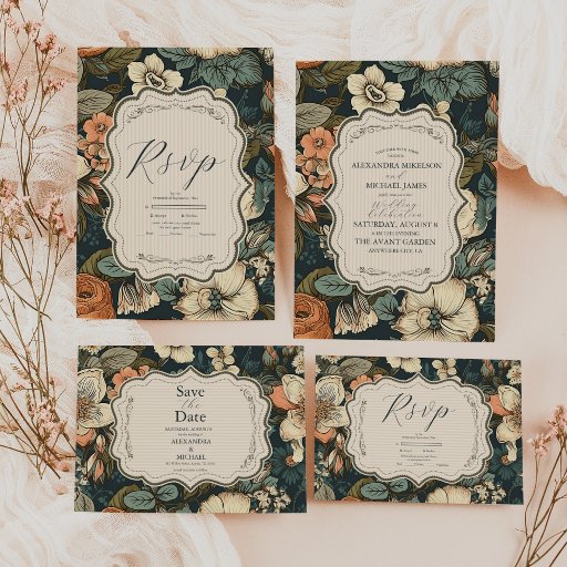 Stellen Sie Ihre Hochzeit mit zeitloser Eleganz vor, indem Sie die Vintage Navy-Herbst-Blume Hochzeitsfeier nutzen. Mit einem tiefen, reichen marinen Hintergrund und aufwändigen Herbstfloralen in warmen Herbsttönen verziert, erweckt diese Einladung wunderbar die Romantik und den Charme der Saison. Die zarten Blumenakzente, kombiniert mit Vintag inspirierter Typografie, schaffen ein klassisches und raffiniertes Aussehen, das perfekt für eine Herbsthochzeit geeignet ist. Set den Ton für Ihren Hochzeitstag mit den Vintagen Navy Herbst Blume Hochzeitsfeiern, wo zeitlose Eleganz und die Schönheit des Herbstes zusammenkommen.