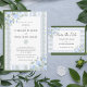 Schöne handgezeichnete blaue Aquarellfarben-Blume mit blühender Vegetation von Weinreben und Blätter, die ein schönes Hintergrundmuster für diese schöne Hochzeitseinladung schaffen. Koordinationsmuster auf der Rückseite.